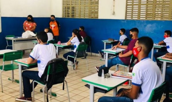 Os alunos receberam kits de higienização contendo máscaras e álcool em gel.