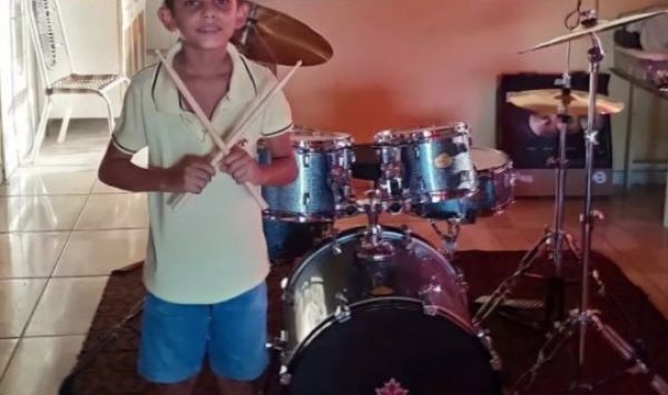 O menino Victor recebeu uma bateria profissional na quinta-feira (27) e agradeceu o artista através das redes sociais.