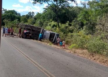 Caminhão carregado de animais tomba em curva na zona rural de Jatobá do Piauí