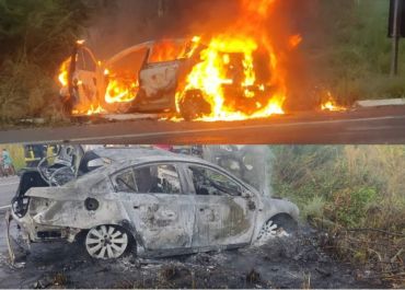 Carro pega fogo após acidente na BR-343 em Piripiri (PI)