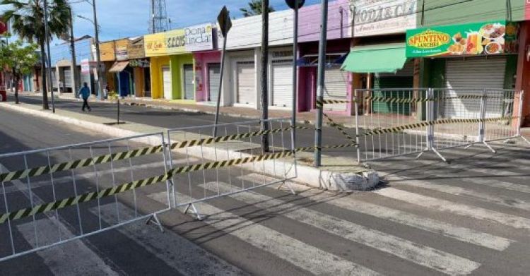 A Prefeitura de Campo Maior, através da Secretaria Municipal de Trânsito e de Mobilidade Urbana, interditou a Avenida Demerval Lobão, principal ponto de comércio da cidade. A medida visa diminuir o fluxo de veículos no centro da cidade, bem como a movimentação de pedestres na região por causa do Novo Coronavírus. Agentes e técnicos da Secretaria de Trânsito estão no local desde as 5 horas dessa segunda-feira, 11.05.