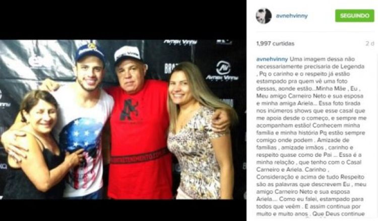 Por outro lado, Avneh Vinny postou em seu perfil no Instagram uma foto com o empresário e falando do carinho que tem pelo casal Carneiro Neto e Ariele.