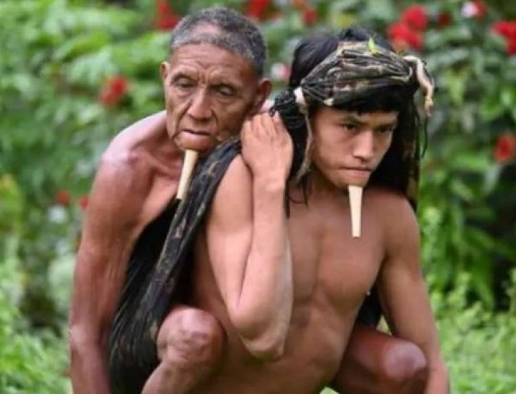 A imagem do jovem índio Tamy Zoé carregando nas costas o pai, Wahu Zoé, em registro fotográfico do médico Erik Jennings viralizou.