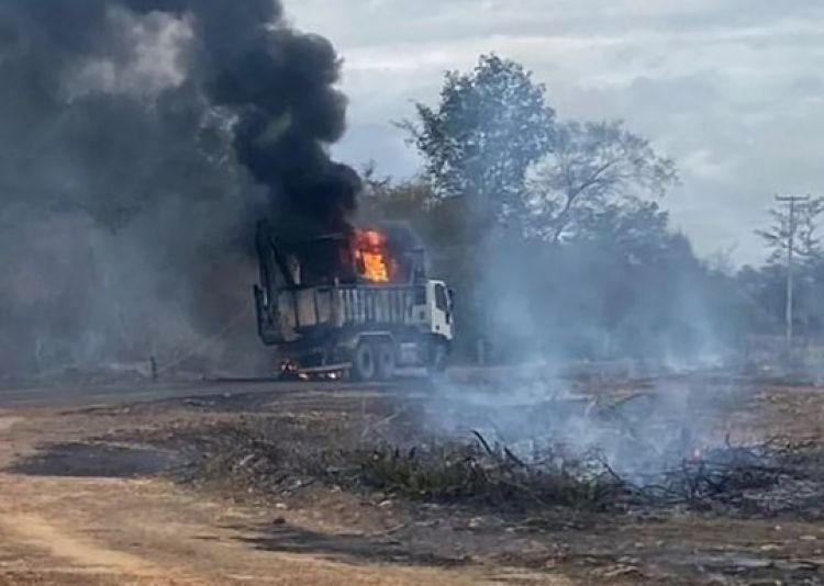 Caminhão da prefeitura de Amarante que transportava máquina pega fogo ao ser atingido por fiação no Piauí — Foto: Prefeitura de Amarante
