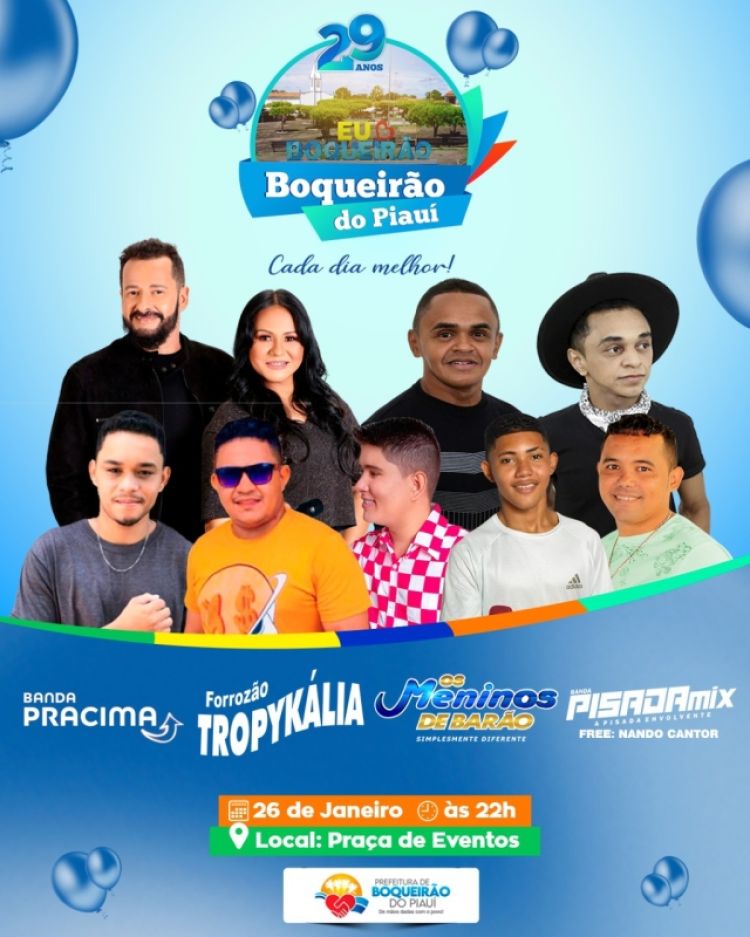 A Prefeitura Municipal de Boqueirão do Piauí divulgou na manhã desta quarta-feira (18), a programação oficial das festividades de comemoração do 29º Aniversário de Emancipação Política do município.