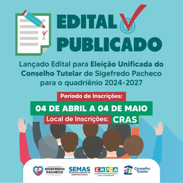 O Conselho Municipal dos Direitos da Criança e do Adolescente-CMDCA tornou público o Edital do processo unificado de escolha para membros do Conselho Tutelar da cidade de Sigefredo Pacheco (PI).