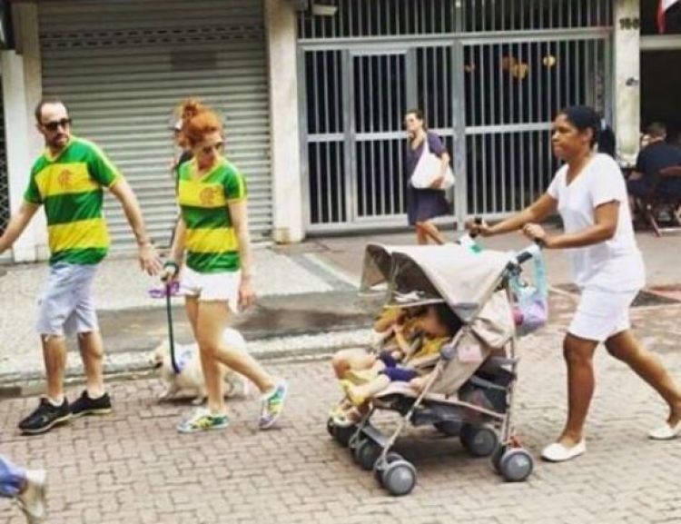 A foto de um casal de pessoas brancas "ricas" nos protestos contra a presidente Dilma no Rio de Janeiro levantou uma enxurrada de críticas nas redes sociais e foi a imagem mais compartilhada do domingo de protestos pelo país. As críticas e suposições foram as mais variadas, inclusive de discriminação racial, de desigualdade entre o que seria um casal esnobando o fato de uma mulher negra empurrar um carrinho com bebês brancos.