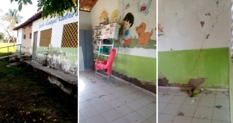Rachadura e infiltração nas paredes, reboco caindo, estrutura precária acabaram chamando a atenção de professores e pais de alunos e as aulas foram suspensas.