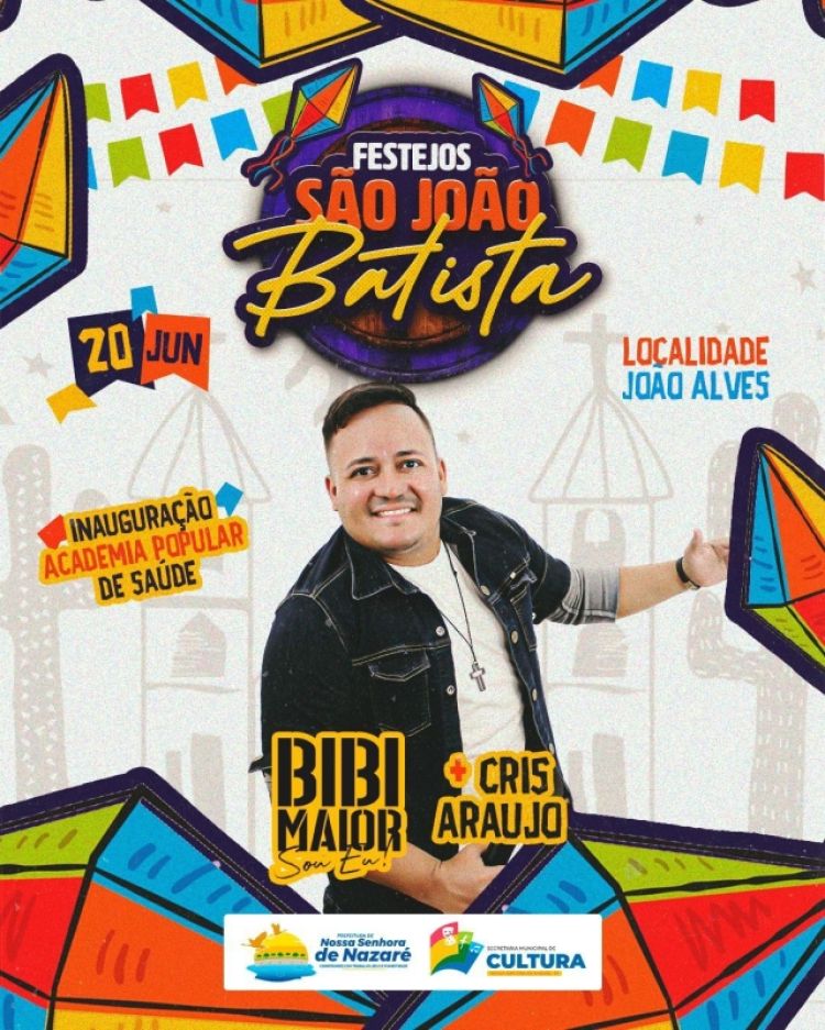 O prefeito Zé Henrique faz o convite para que a população prestigie a abertura dos festejos de São João Batista e, logo após, participarem da inauguração da academia com a animação de Bibi Maior e Cris Araújo.