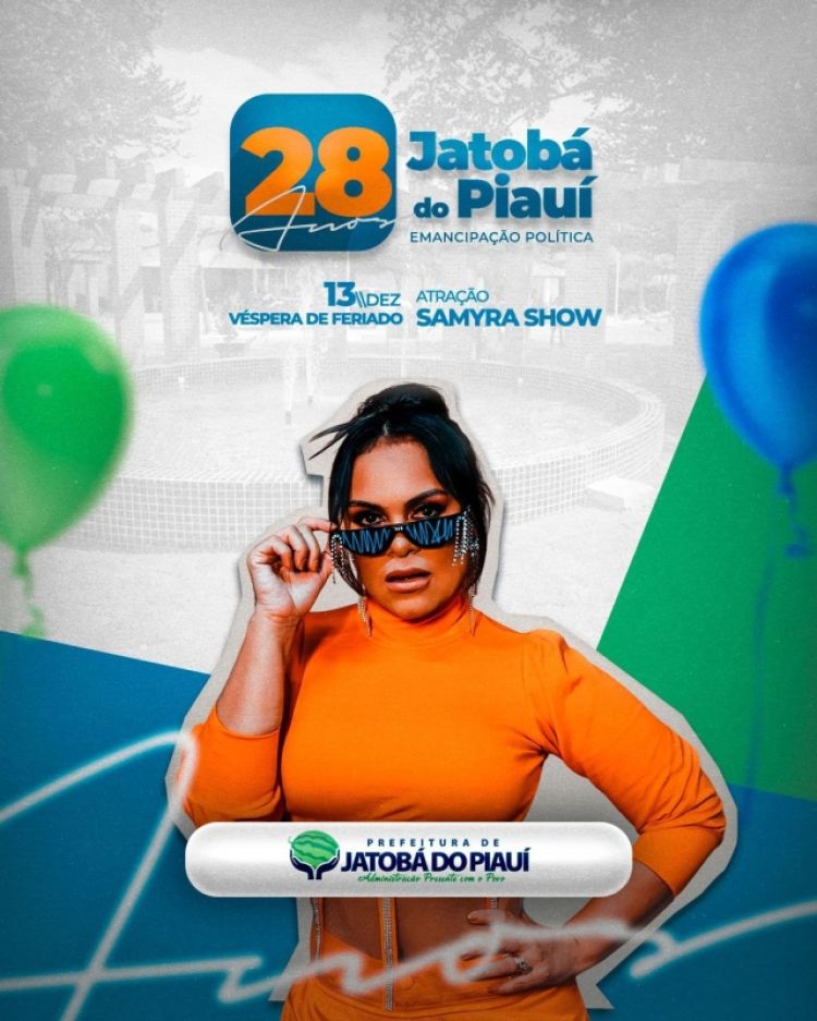 Jatobá tem se tornado nós últimos tempos a cidade dos grandes eventos, superando inclusive Campo Maior. Depois de Vitor Fernandes no Festival da Melancia e Desejo de Menina no Festejo da padroeira da cidade, Nossa Senhora das Graças, agora o Prefeito anuncia Samyra Show para o aniversário de emancipação política do município.