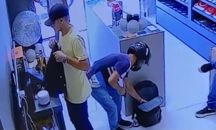 Um deles ainda pega um Whisky e uma mochila. Na ação, eles levaram o celular de uma cliente, do dono e de funcionários que estavam na loja. Após o roubo eles saem da loja com as duas mochilas e uma caixa de som, em uma motocicleta vermelha.