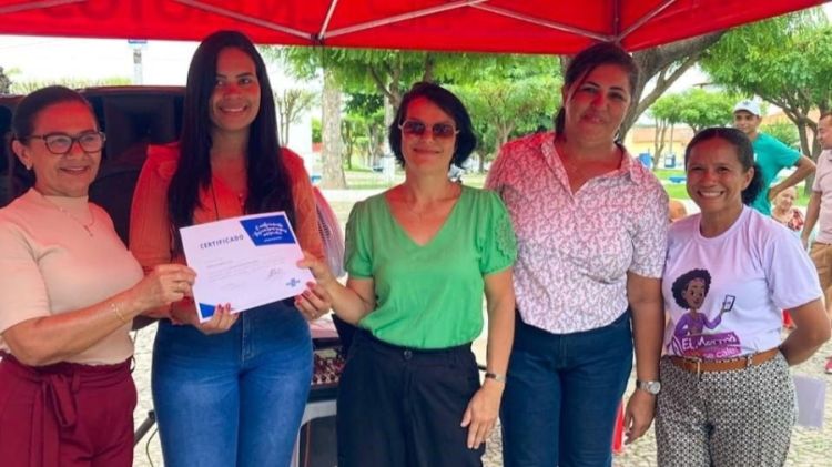 Durante o evento, foram entregues certificados para as mulheres que participaram dos cursos do projeto Elas Empreendem, que promoveu capacitações na área de empreendedorismo, em consonância com o Março Mulher, com o intuito de fortalecer as mulheres na busca por sua autonomia econômica.