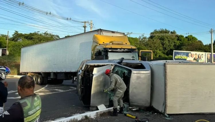 De acordo com as informações da Polícia Rodoviária Federal (PRF), ocorreu um acidente do tipo colisão lateral, seguida de tombamento envolvendo os veículos FORD/F250 e SCANIA/G 400.