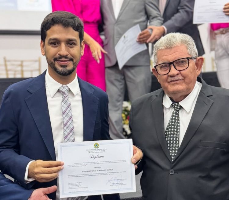 A Justiça Eleitoral entregou o diploma para o prefeito, seu vice Carne Assada e vereadores Ângela Mateus, Lindomar da Moto Peças, Chico Badé, Larissa Nascimento, Clécia Carne Assada, Enfermeira Camila, Sandra Freitas, Renata do Povão e Clairton.