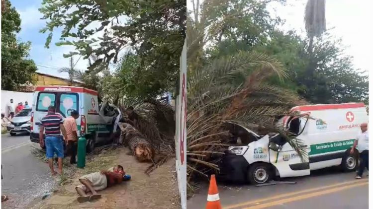 Um acidente inusitado aconteceu na tarde desta sexta-feira (03) em Campo Maior. Uma palmeira desabou e atingiu violentamente uma ambulância no momento que esta cruzava a BR-343, nas proximidades da Policlínica.