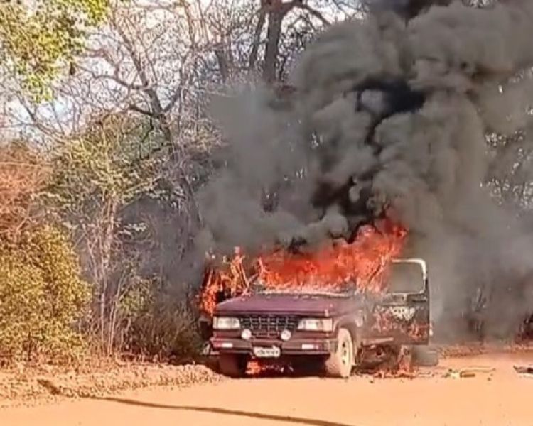 Uma caminhonete modelo D20 ficou completamente destruída após pegar fogo na tarde deste sábado (27), em uma estrada vicinal na zona rural de Sigefredo Pacheco, na região Norte do Piauí.
