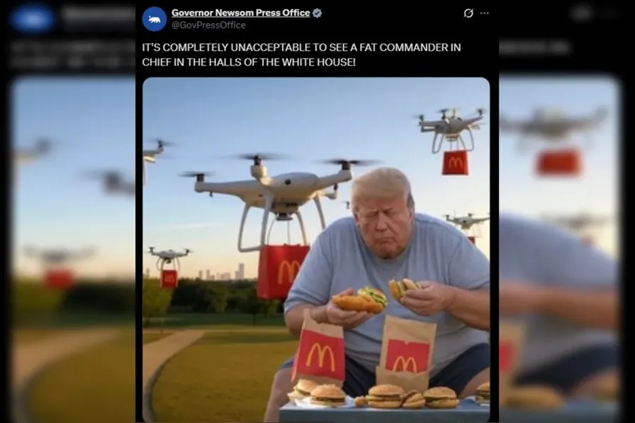 O governador da Califórnia, Gavin Newsom, aproveitou a polêmica fala do secretário de Guerra dos Estados Unidos, Pete Hegseth, sobre “generais e almirantes gordos” para ironizar o presidente Donald Trump nas redes sociais.