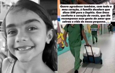 A mãe de Marina, a empreendedora Cynara Lopes, agradeceu aos que rezaram pela saúde da filha e comunicou a decisão tomada junto ao esposo, o tabelião Aurino Rocha, sobre a doação.