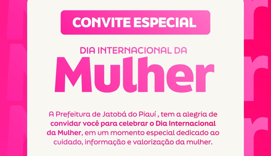 A Prefeitura de Jatobá do Piauí vai realizar, no próximo domingo (15), uma programação especial em homenagem ao Dia Internacional da Mulher. O evento acontecerá a partir das 9h, no Centro de Referência de Assistência Social (CRAS), reunindo diversas atividades voltadas ao cuidado, informação e valorização das mulheres do município.