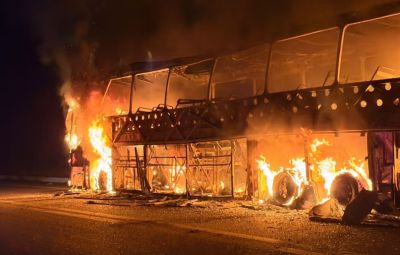 As chamas se arrastaram pelo ônibus assim que os ocupantes saíram. Os policiais militares foram acionados e pediram apoio do Serviço de Atendimento Móvel de Urgência, do Corpo de Bombeiros e da Polícia Rodoviária Federal.