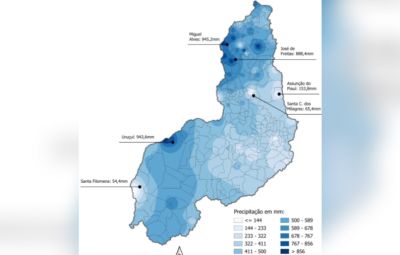 Apesar do trimestre corresponder ao principal período chuvoso, municípios do semiárido, como Santa Cruz dos Milagres e Assunção do Piauí, registraram baixos acumulados, reforçando a característica de irregularidade das chuvas no estado.