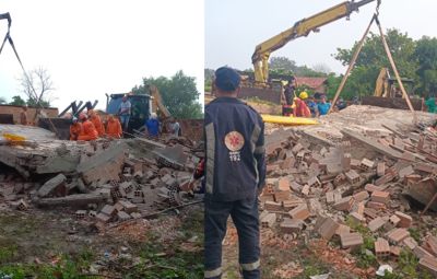 Equipes da Polícia Militar, Corpo de Bombeiros e Samu estão no local. Um retroescavadeira foi acionada para auxiliar no resgate de outras vítimas.
