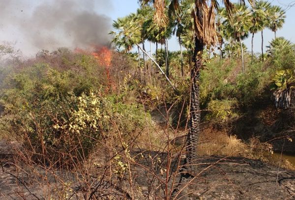 Desde segunda-feira o fogo consome uma área grande de vegetação seca e carnaubais nas proximidades do centro urbano que vai do Bairros Fripisa, passando pelo Matadouro, Cariri e Califôrnia.