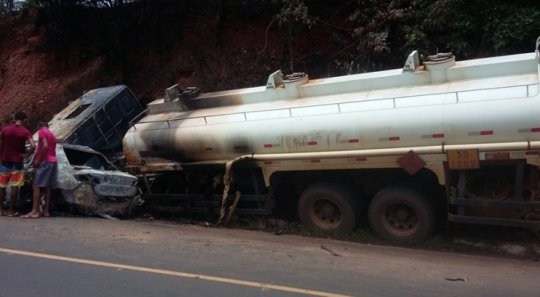 Uma família natural de Corrente-PI, morreu carbonizada depois de um acidente de trânsito no Km 618 da BR-135, a cerca de 1km da cidade de Cristalândia a 900 km ao sul de Teresina. Segundo a Polícia Rodoviária Federal, o acidente tipo colisão frontal aconteceu por volta das 20:30hs de sábado, envolvendo os veículos modelo caminhão tanque, placa OZF 0017/BA, e Fiat/Siena de placa OAT 0259/GO, que saiu do Povoado Pau D'arco em Cristalândia para Corrente.