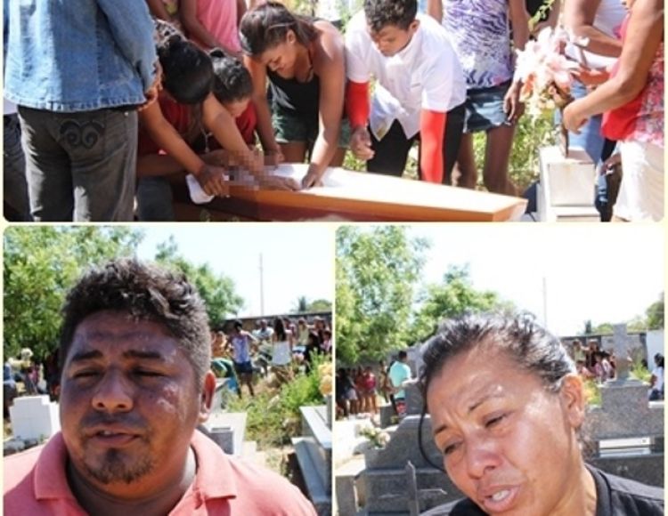 Sob prantos, como??o?e muita revolta familiares e?amigos da pequena Sara Valentina Alves Nascimento deram o ?ltimo adeus ??crian?a na manh? desta quarta-feira (02/09) no Cemit?rio do Bairro Cidade Nova em Campo Maior. Os pais, Eliane e Jorge, ainda em estado de choque, n?o tiveram condi??es emocionais de participar do enterro da filha. Sara morreu na manh? de ontem no Hospital Regional de Campo Maior no momento em que recebeu uma medica??o.