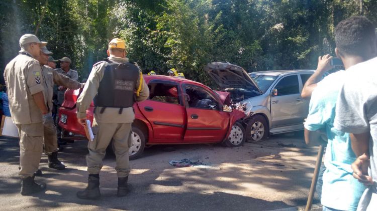 Segundo a polícia, os veículos, uma Hilux e um Prisma, colidiram violentamente num trecho do povoado Santa Teresa.