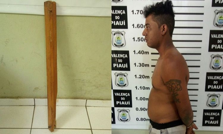 O pedaço de madeira ´é de uma mesa, que durante a briga foi quebrada. Ele pegou o pedaço de madeira e começou a bater na esposa.