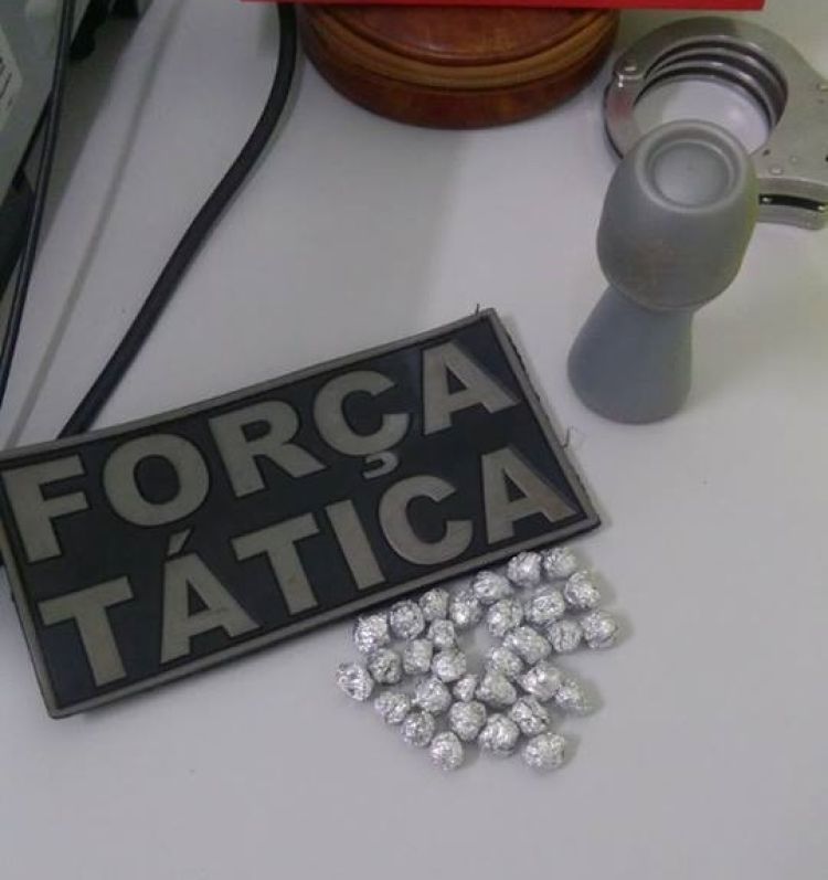 Assim que abordado e visto sem saída, o menor atirou em cima do telhado de uma residência um saco plástico com conteúdo suspeito, sendo confirmado em seguida que se tratava de um total de 31 pedras de crack envolvidas em papel alumínio que seria vendida pelas redondezas do bairro.