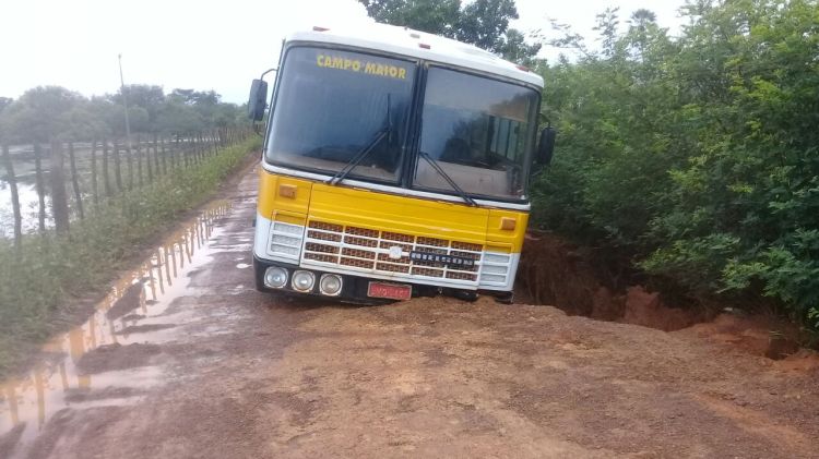 Um ônibus ficou preso na manhã desta quarta-feira (11/04) em uma cratera aberta na estrada vicinal que liga a Comunica Lagoa Seca à cidade de Campo Maior. O ônibus seguia para a Localidade Caldeirão pegar alunos para as escolas do município. Apenas o motorista estava no veículo. Ninguém se feriu.