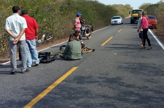Na manh? desta segunda-feira (28/09) dois Policias Militares foram vitimas de um acidente pr?ximo ao povoado Carapebas em Lu?s Correia-PI. Os dois seguiam para exercer suas fun??es no munic?pio de Cajueiro da Praia, quando o pneu traseiro da motocicleta estourou. Ap?s perder o controle da motocicleta os PM?s ca?ram e ficaram gravemente feridos.
