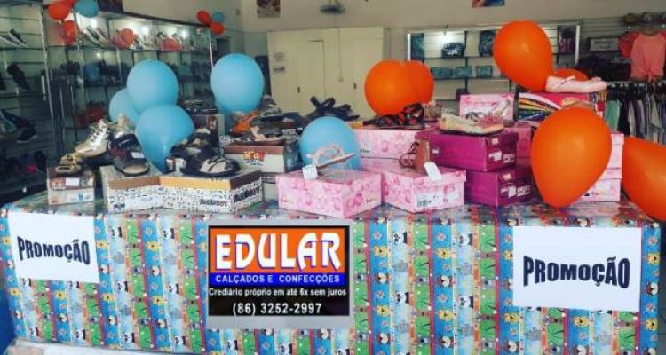 Venha comprar o presente para o dia das crianças na Edular. Aqui você vai encontrar calçados e confecções com o melhor preço, melhor qualidade e a melhor forma de pagamento. Tudo parcelado em até 06x sem juros no crediário próprio Edular ou em todos os cartões e a vista um super desconto.