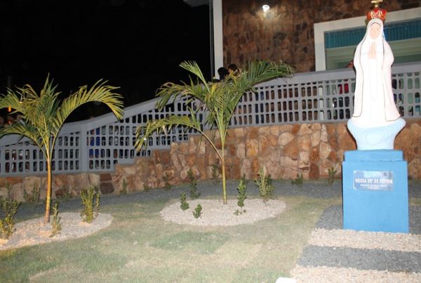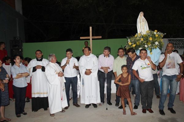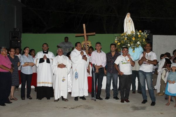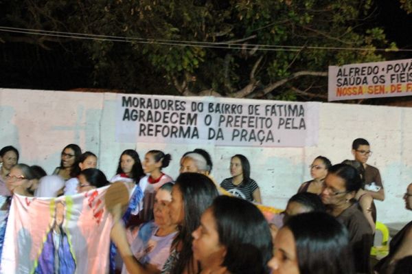 O Padre Duarte da Igreja de Nossa Senhora de Fátima no Bairro de Fátima fez a benção após a procissão que deu início ao festejo em homenagem a santa na noite deste sábado (03). A procissão saiu do Colégio Vida Verde e foi acompanhada por vários fieis.