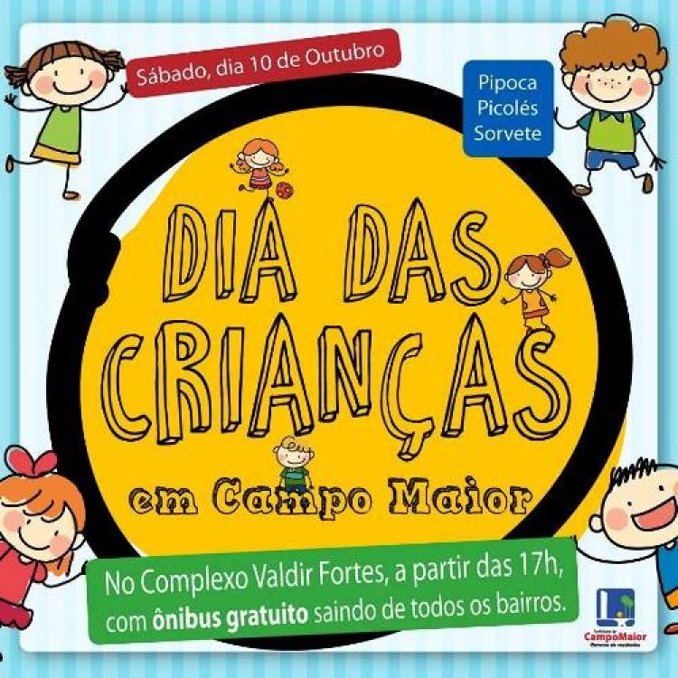 Para comemorar o Dia das Crianças, a Prefeitura de Campo Maior vai realizar uma grande festa para a garotada no dia 10 de outubro no Complexo de Eventos Valdir Fortes. O evento está sendo preparado com grande carinho pela equipe do governo municipal, com uma extensa programação que começará a partir das 17h.