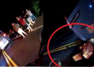O trânsito no local ficou interrompido devido a tentativa de retirada da moto debaixo do ônibus.