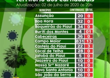 Em boletim epidemiologico, divuldado pela Secretaria de Saúde do Piauí (SESAPI), a região dos Carnaubais, que conta com 16 municipios, já registra o número de 1085 casos confimados com o novo coronavirus. .