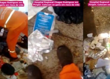 As imagens mostram itens fora dos sacos plásticos e, segundo os coletores, material que oferece risco de infecção colocado em sacolas diferentes das que deveriam ser utilizadas.