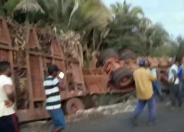 Treminhão carregado com cana de açúcar tomba em União