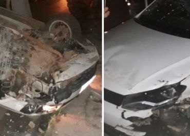 Carro tomba após colidir em residência no município de Esperantina