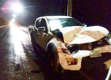 Chovia na hora do acidente, o que pode ter dificultado na hora que o motorista tentou frear para desviar, colidindo com o animal