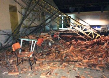 A escola tinha passado por reparos no telhado durante a manhã. Por sorte as pessoas que estava na escola, ocupavam a quadra de esportes