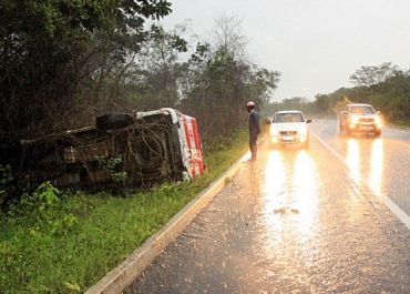 A suspeita é que o acidente aconteceu após uma tentativa de ultrapassagem. O carro saiu da pista e capotou algumas vezes.