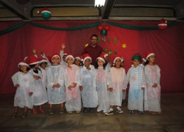 Houve números de dança, teatro com alto de natal, coral e até um mini sanfoneiro dando um show para o público.
