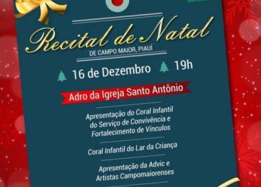 O recital terá apresentação do Coral Infantil do Serviço de Convivência e Fortalecimento de Vinculos, do Coral Infantil do Lar da Criança, apresentação da Advic e de artistas campomaiorenses.