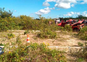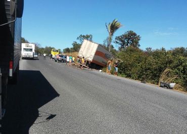Após a perda de controle, o caminhão tombou e seguiu se arastando na pista colidindo de frente com o outro automóvel