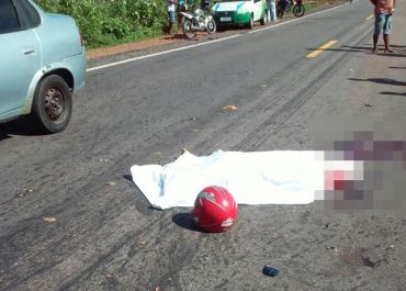 A colisão foi entre uma moto e uma carreta quando o motociclista adentrou a rodovia sem observar e foi colhido pelo veículo que estava carregada de madeira.