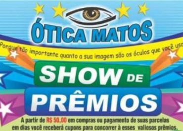 São mais de 30 mil reais em prêmios para os clientes da Ótica Matos.